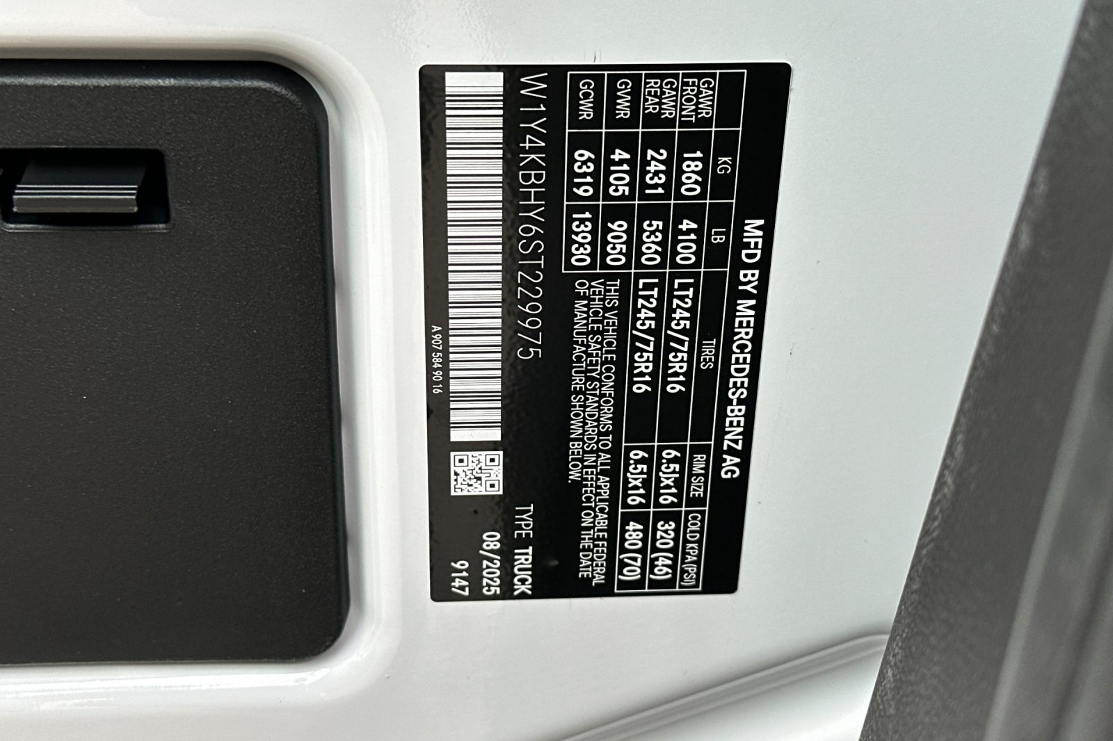 - VIN : W1Y4KBHY6ST229975
