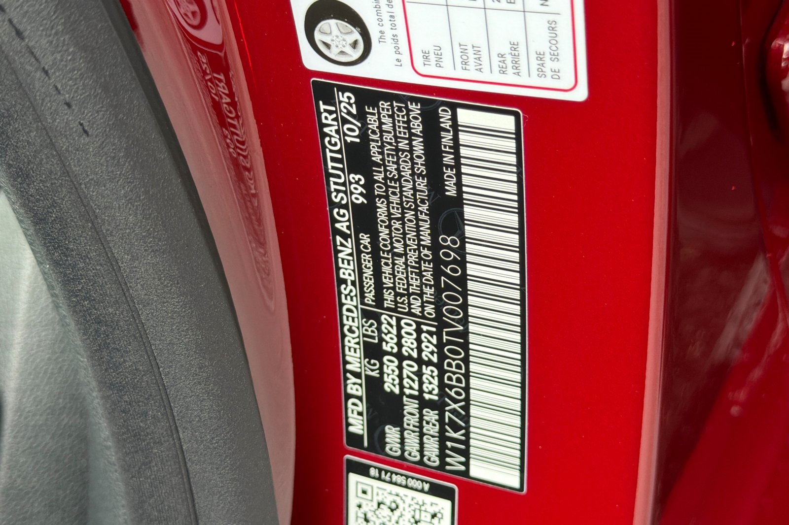 - VIN : W1K7X6BB0TV007698