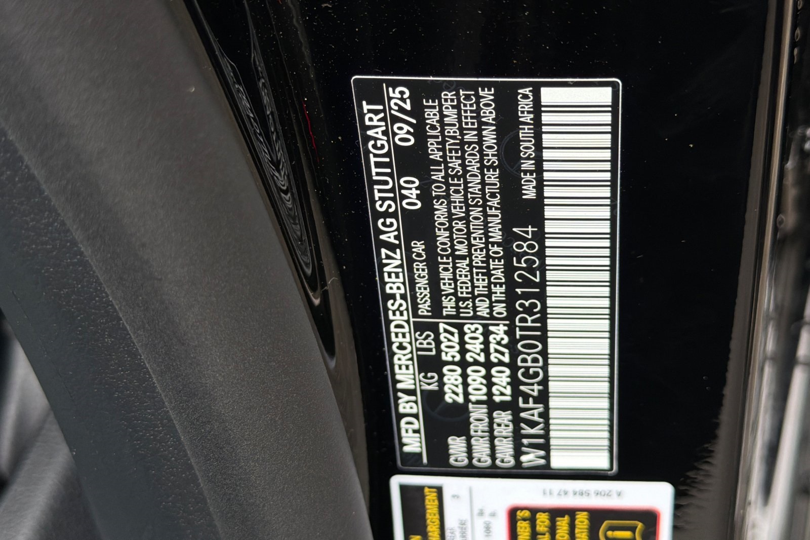 - VIN : W1KAF4GB0TR312584