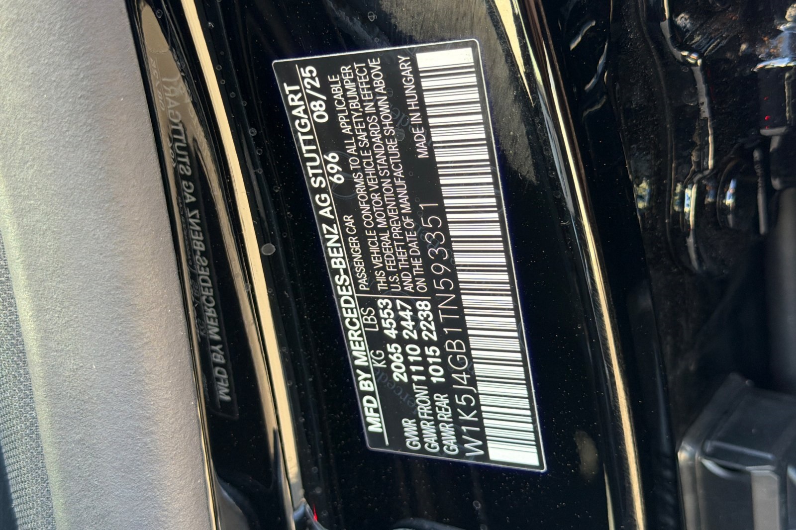 - VIN : W1K5J4GB1TN593351