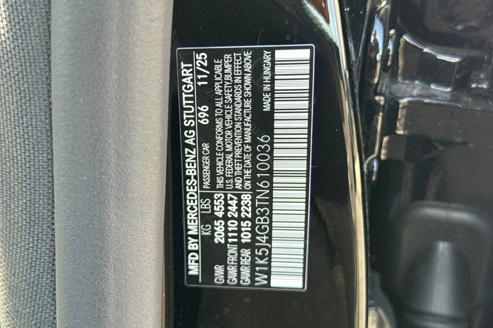 - VIN : W1K5J4GB3TN610036
