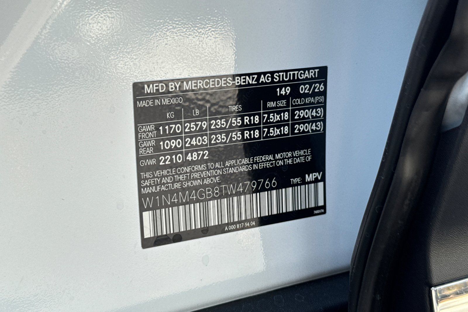 - VIN : W1N4M4GB8TW479766