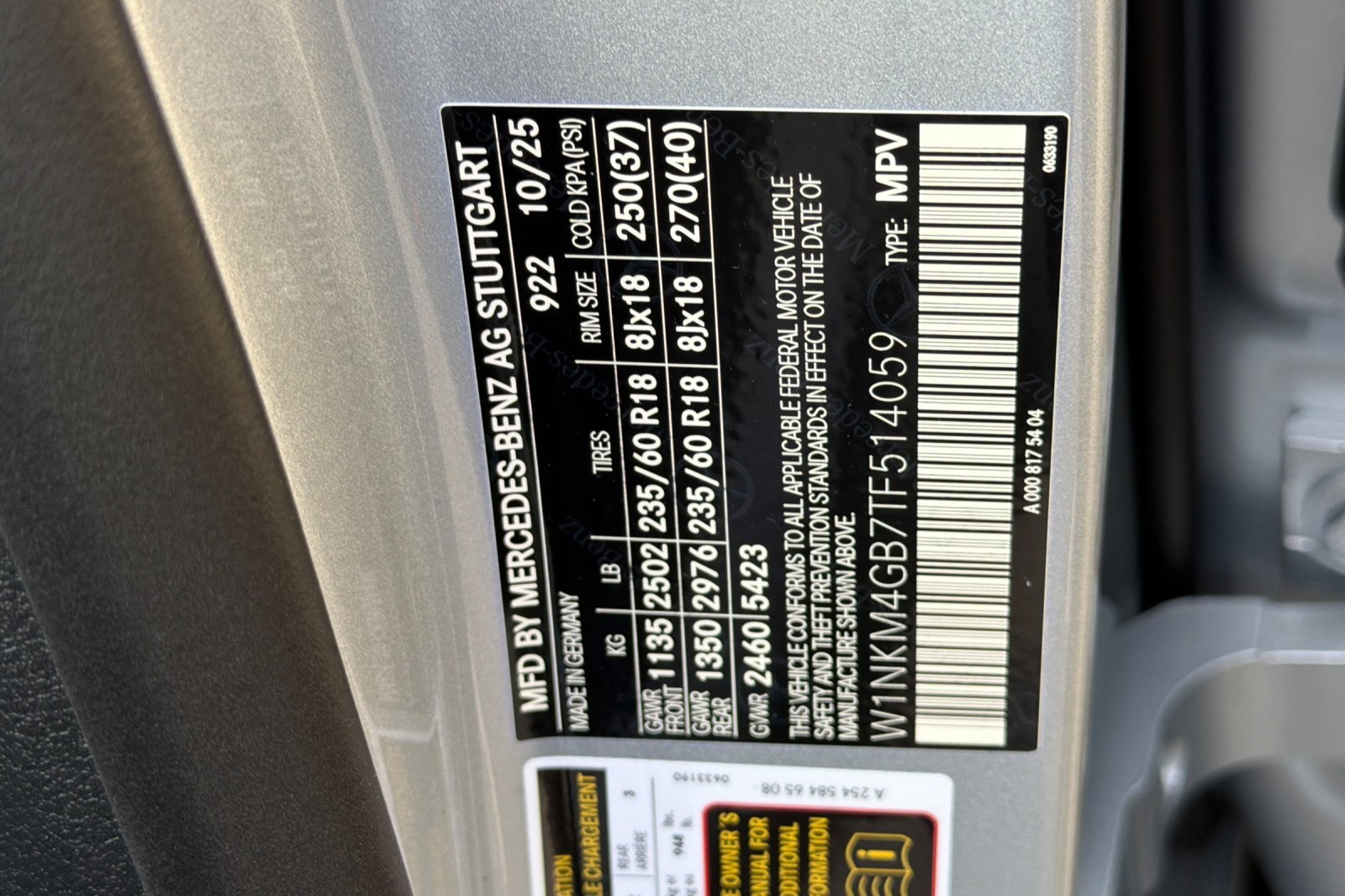 - VIN : W1NKM4GB7TF514059