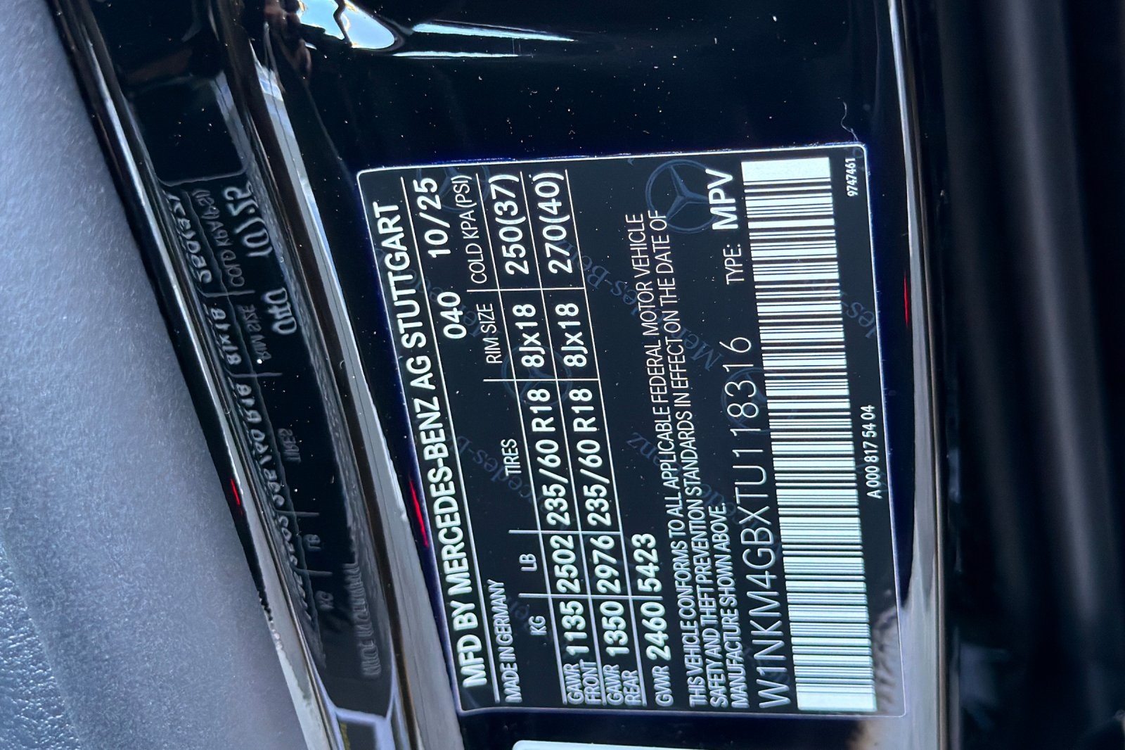 - VIN : W1NKM4GBXTU118316