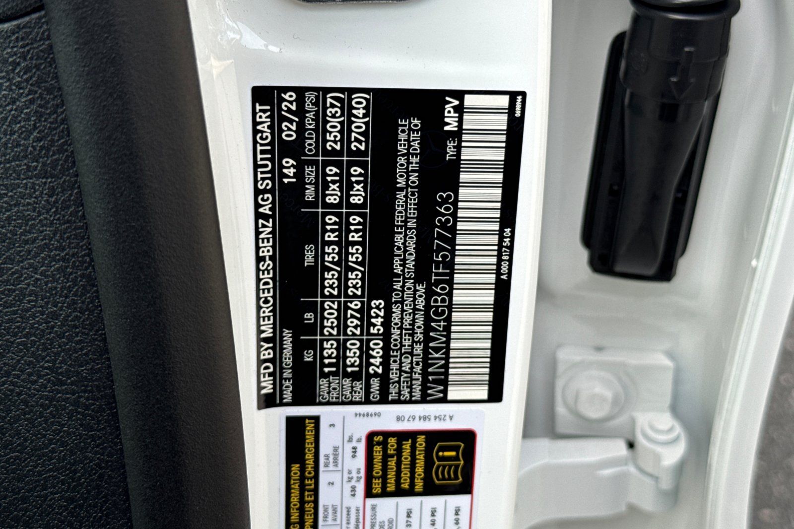 - VIN : W1NKM4GB6TF577363