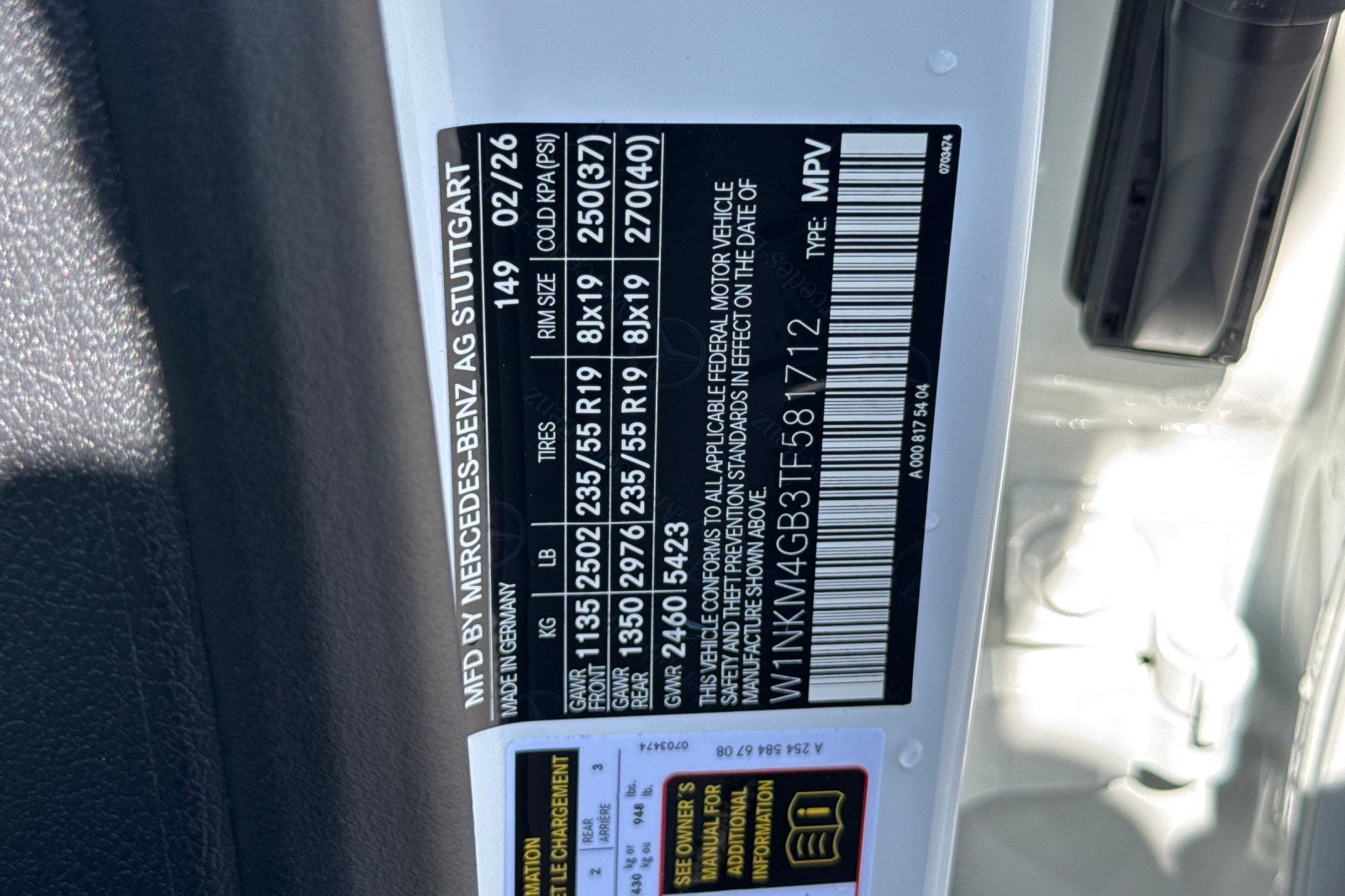 - VIN : W1NKM4GB3TF581712