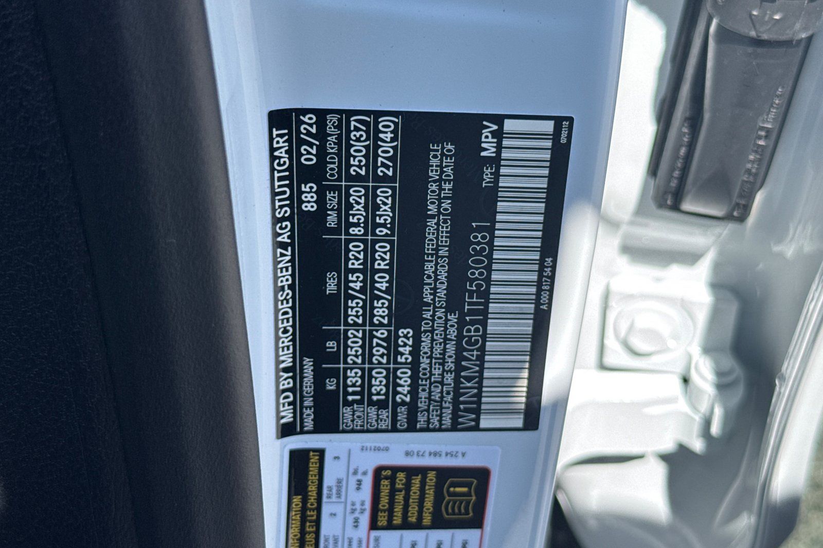 - VIN : W1NKM4GB1TF580381