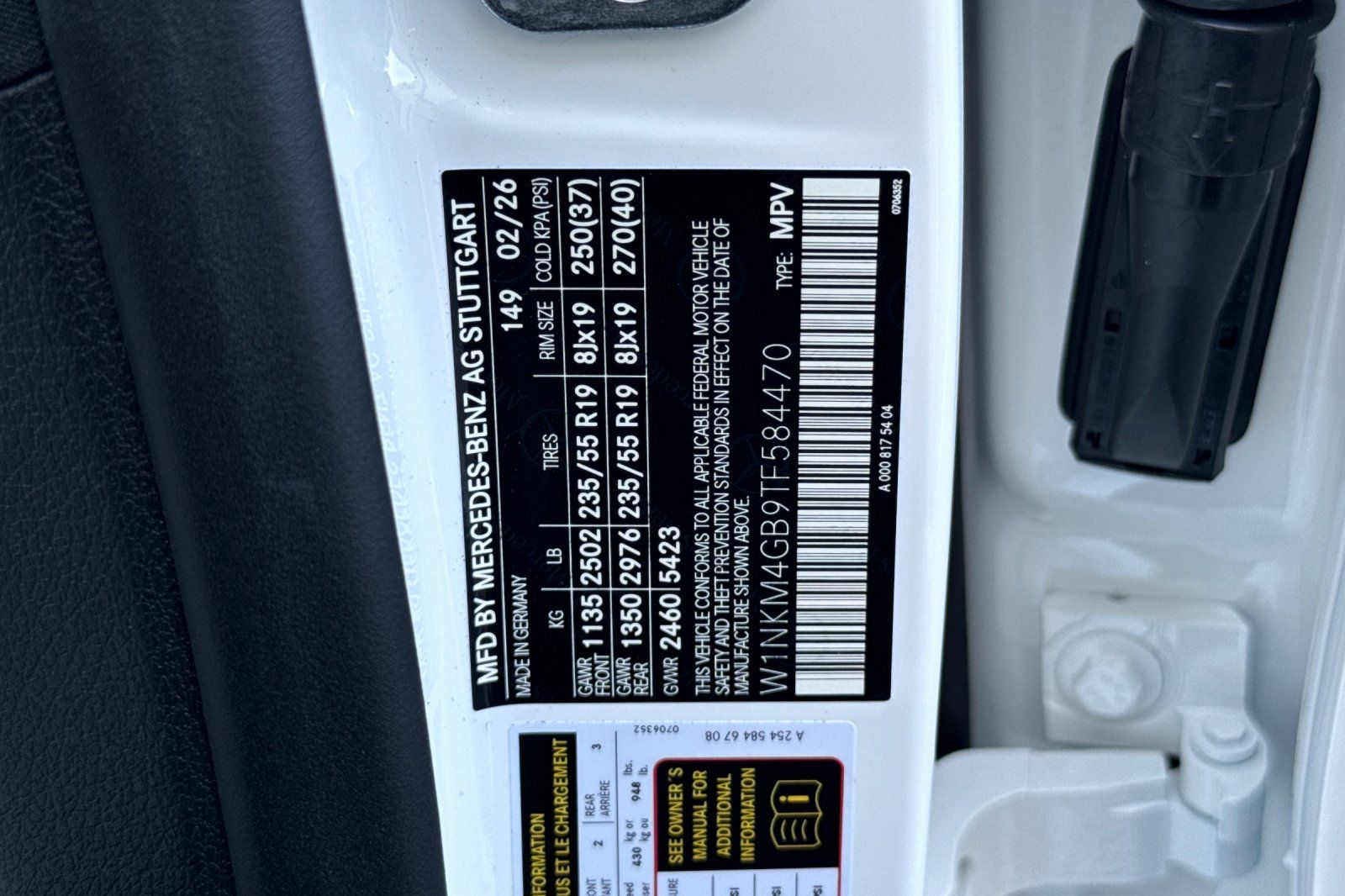 - VIN : W1NKM4GB9TF584470