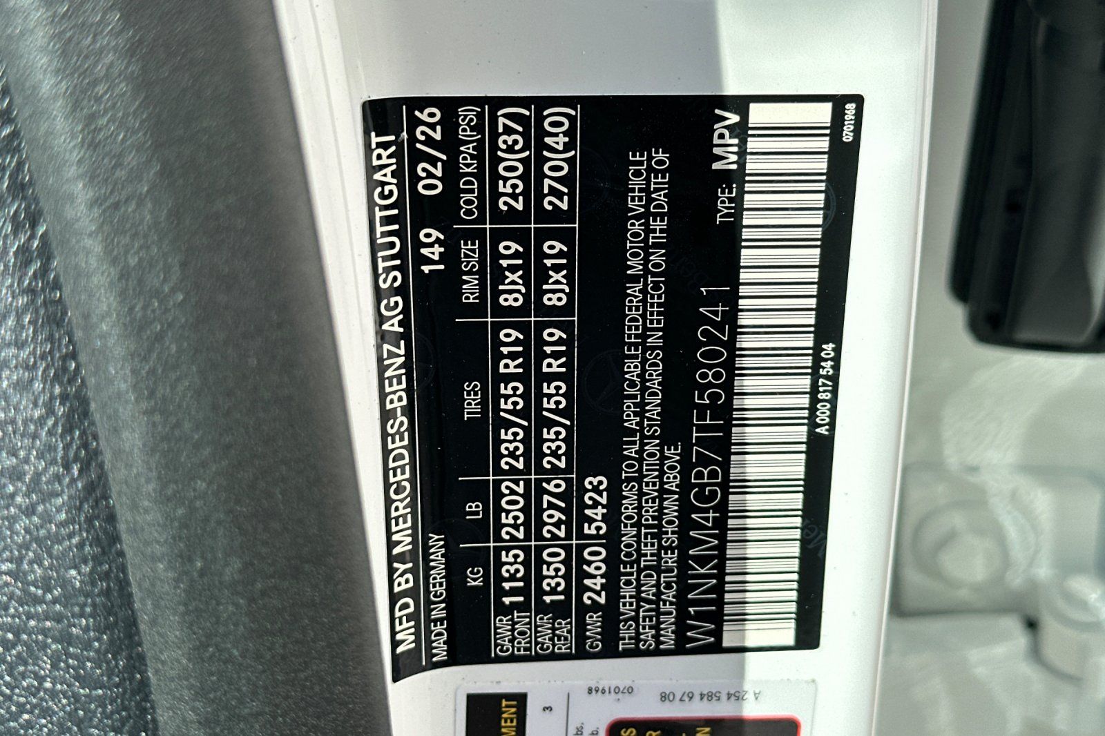 - VIN : W1NKM4GB7TF580241