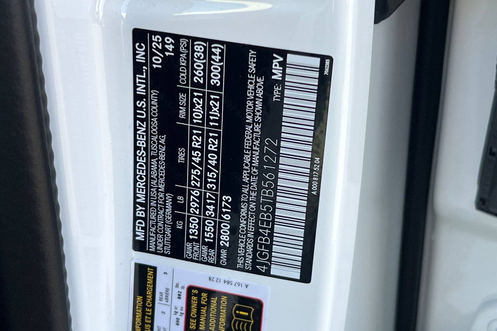 - VIN : 4JGFB4EB5TB561272