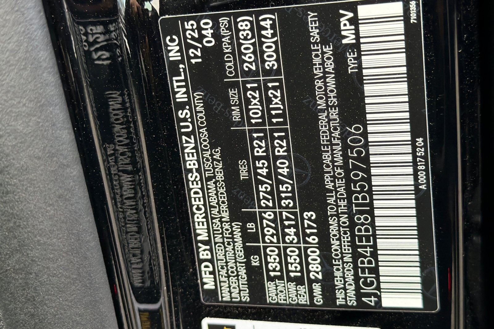 - VIN : 4JGFB4EB8TB597506