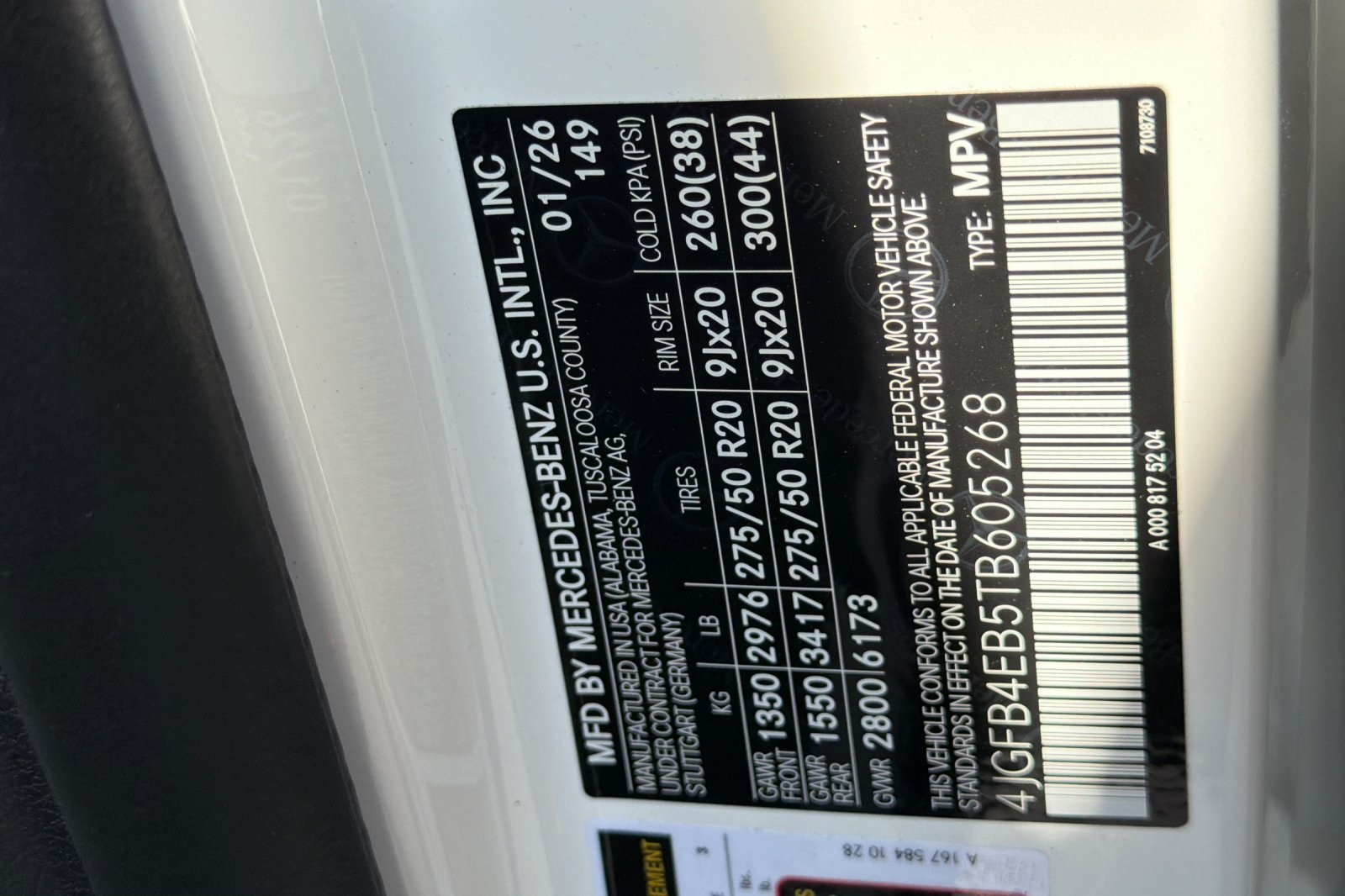 - VIN : 4JGFB4EB5TB605268
