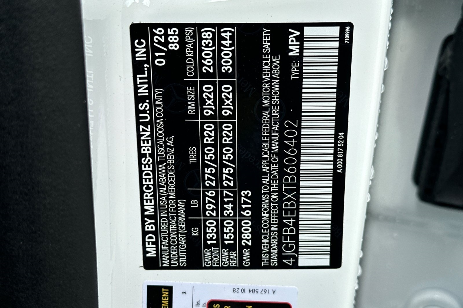 - VIN : 4JGFB4EBXTB606402