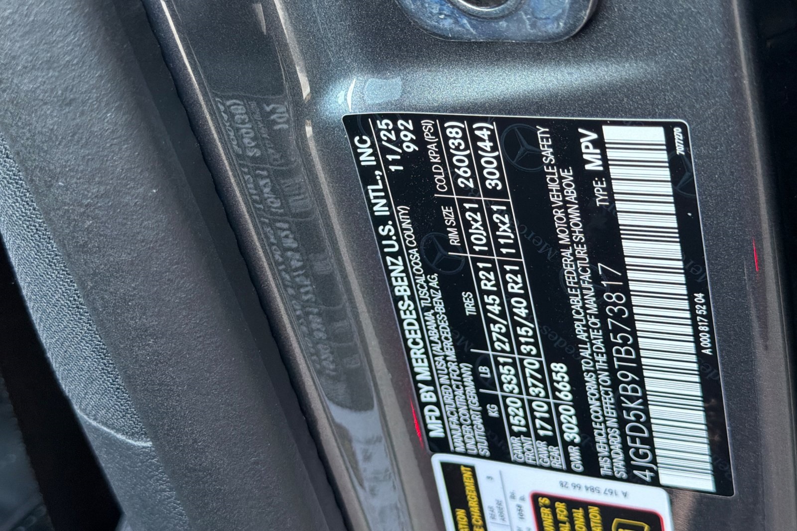 - VIN : 4JGFD5KB9TB573817