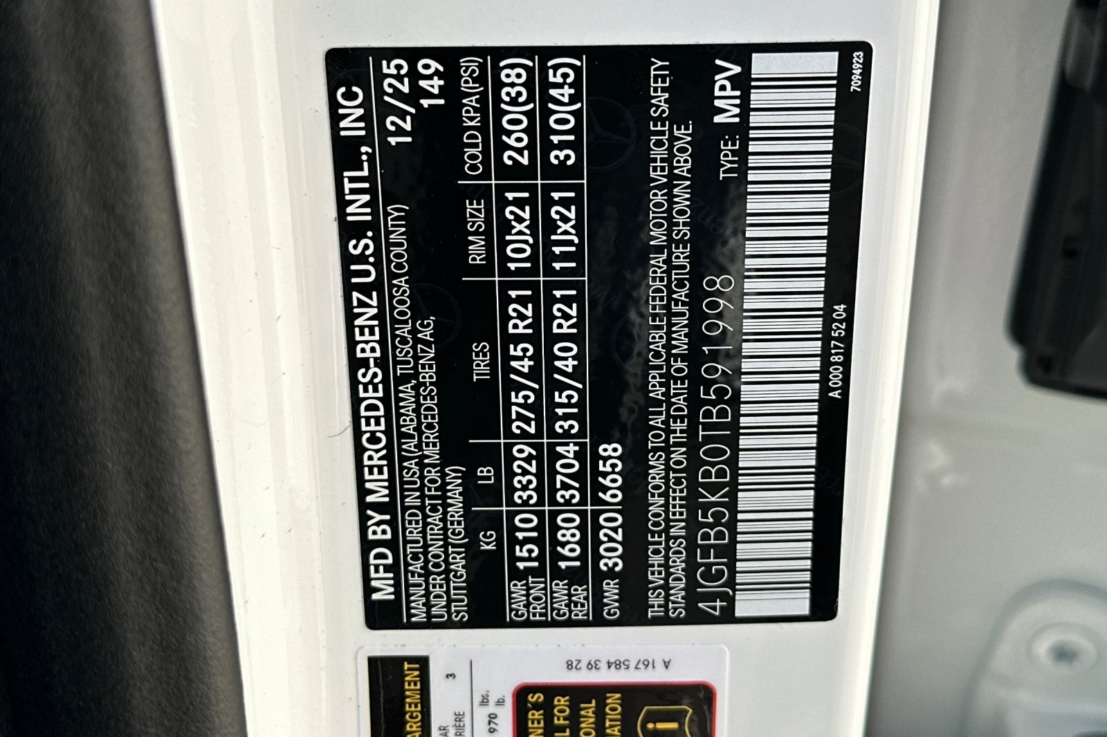 - VIN : 4JGFB5KB0TB591998