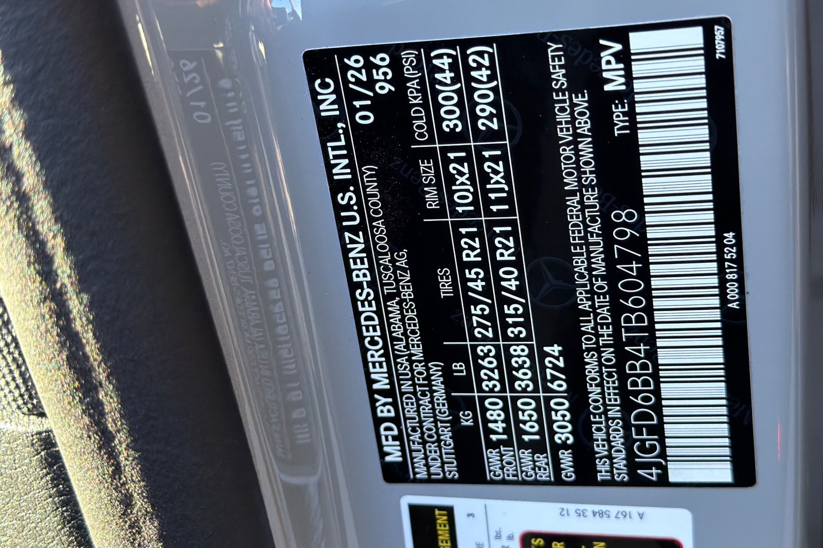 - VIN : 4JGFD6BB4TB604798