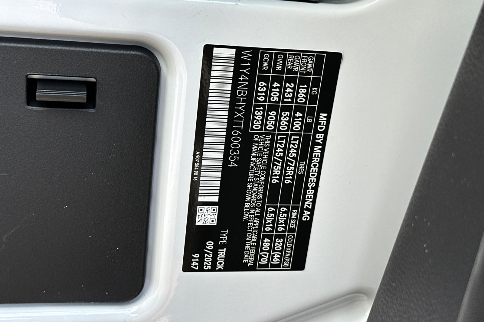 - VIN : W1Y4NBHYXTT600354