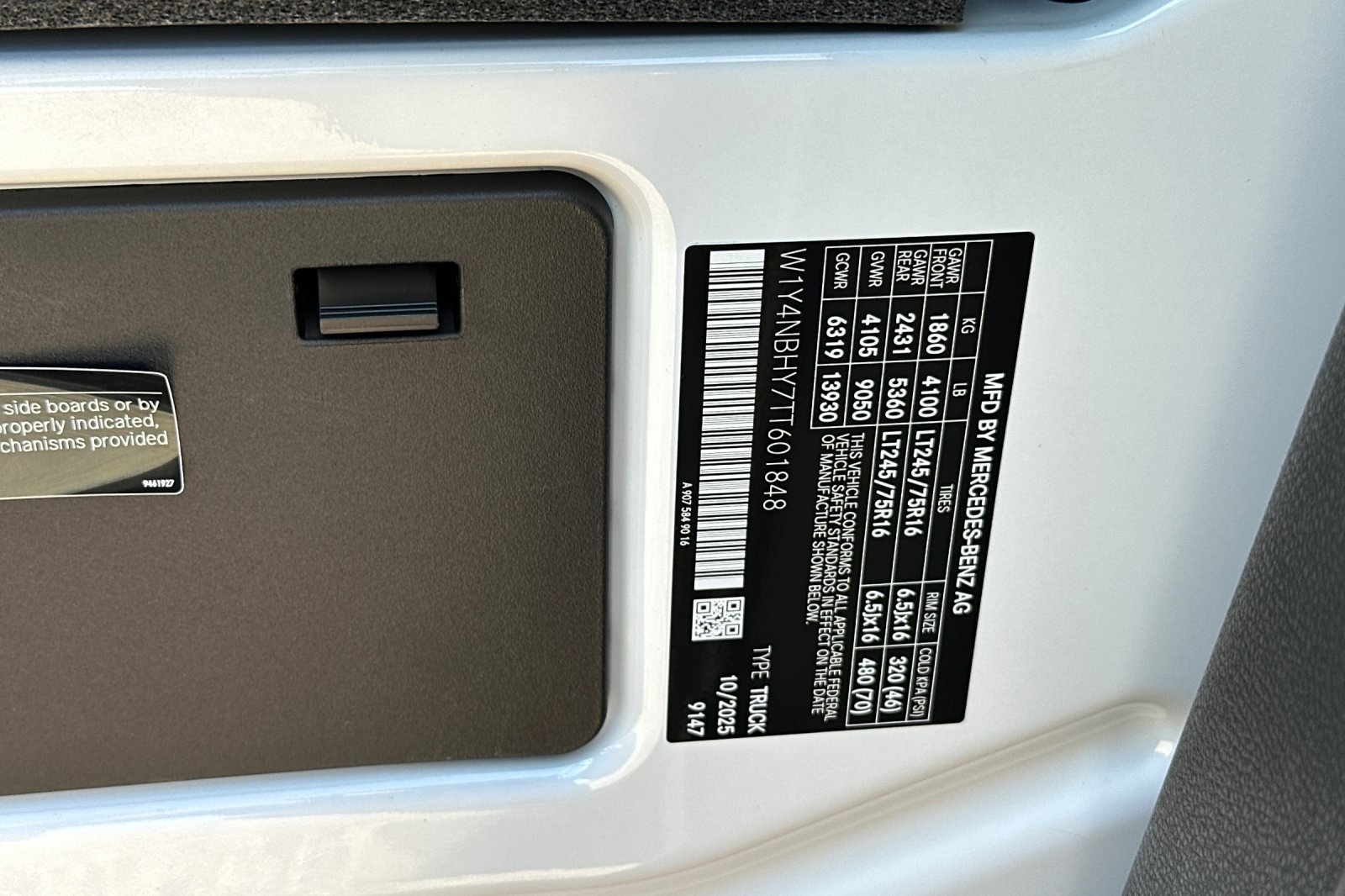 - VIN : W1Y4NBHY7TT601848