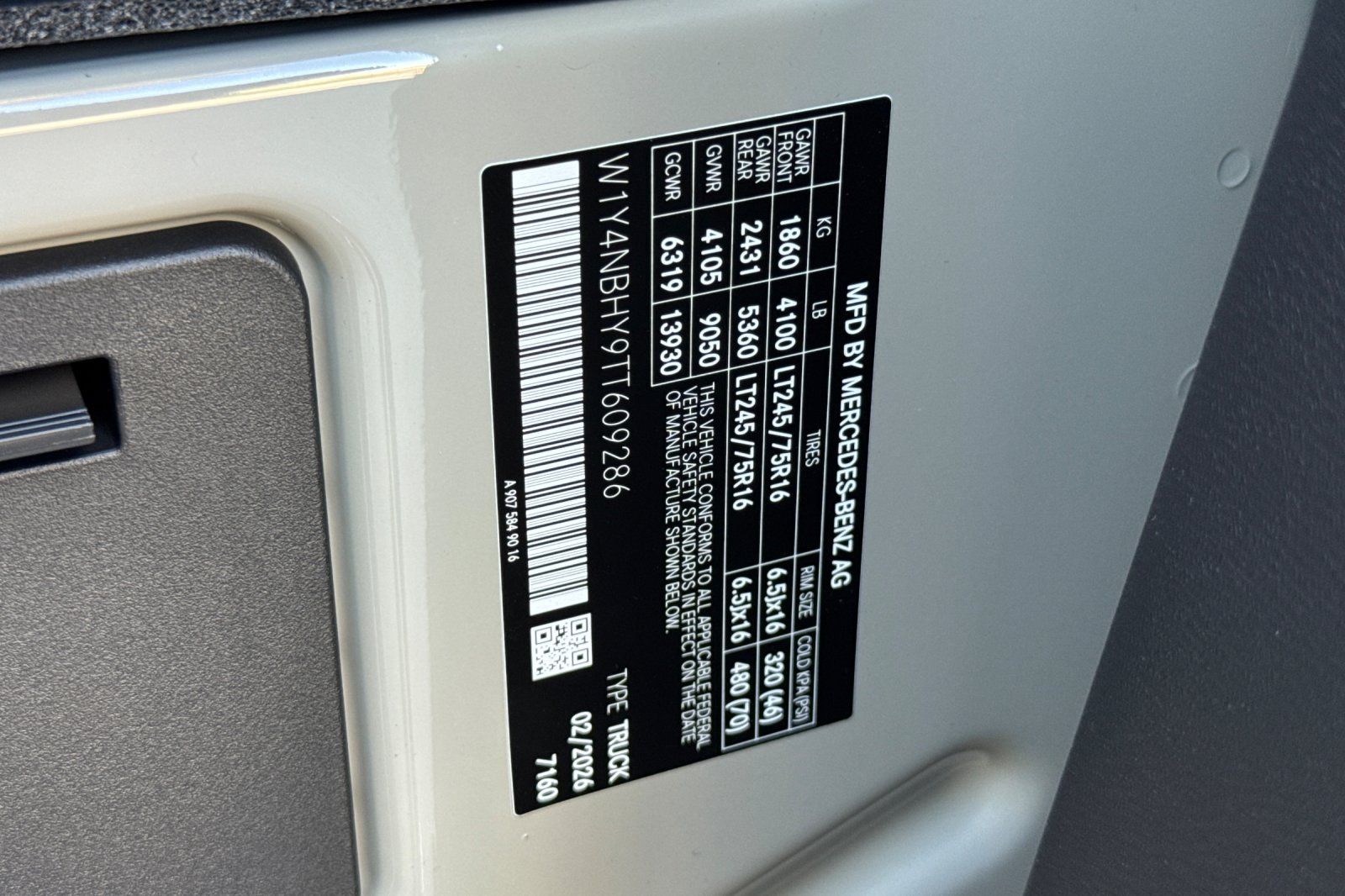 - VIN : W1Y4NBHY9TT609286
