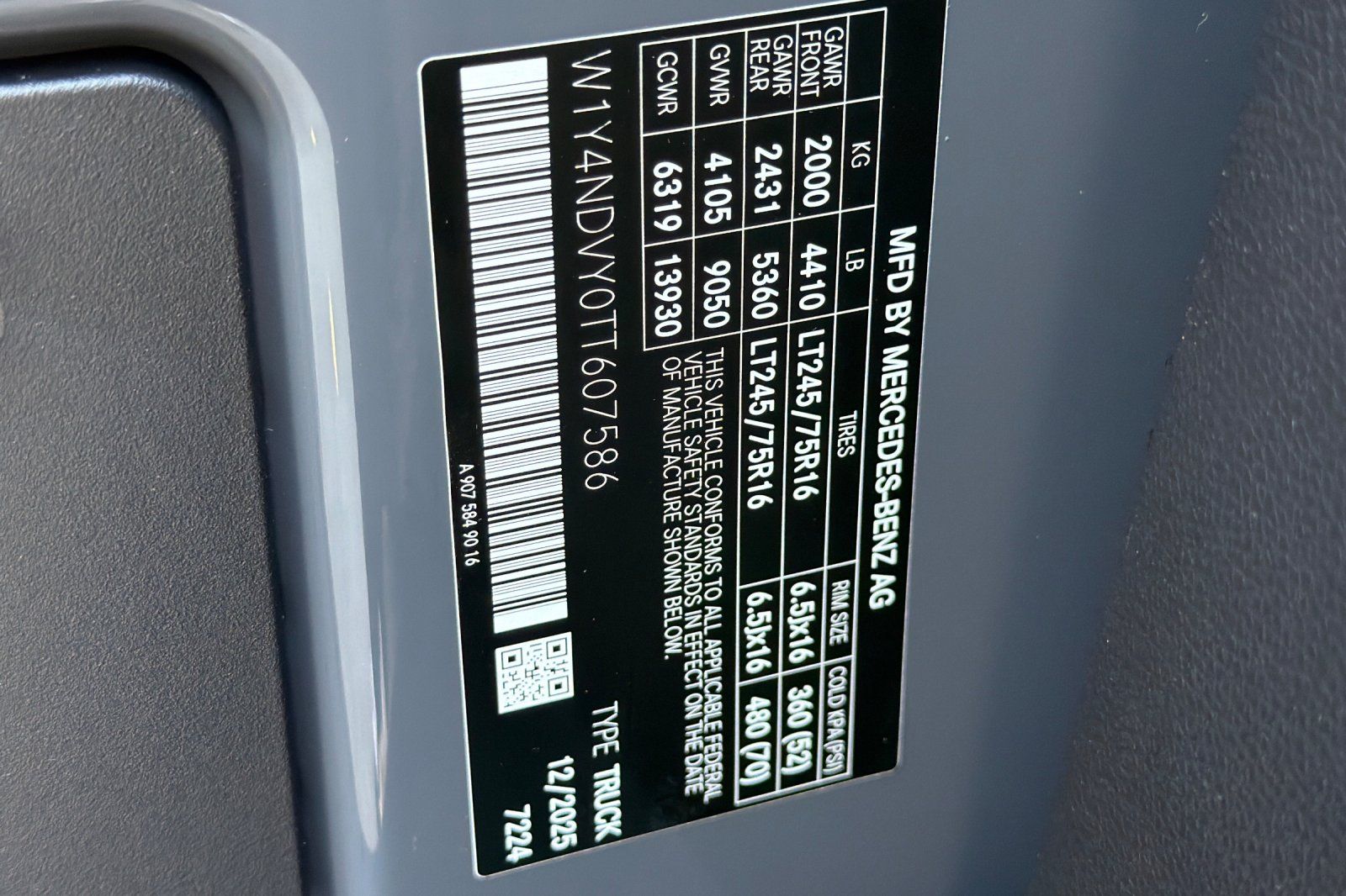 - VIN : W1Y4NDVY0TT607586