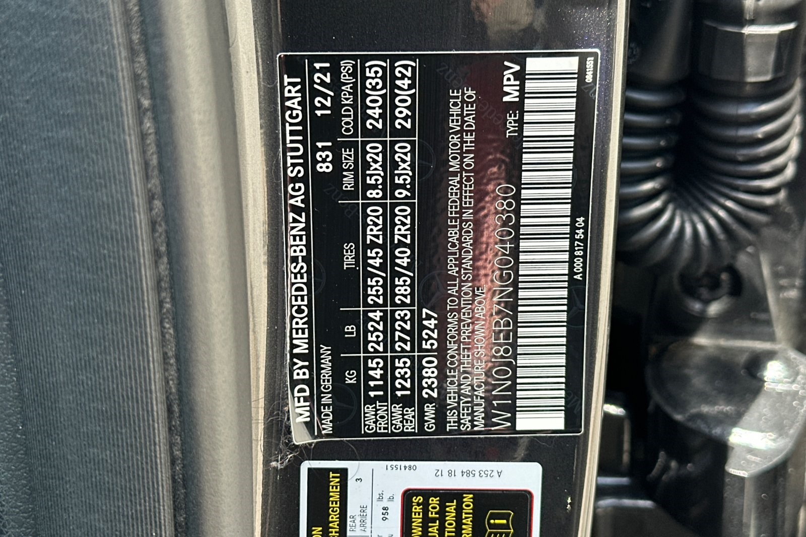 - VIN : W1N0J8EB7NG040380