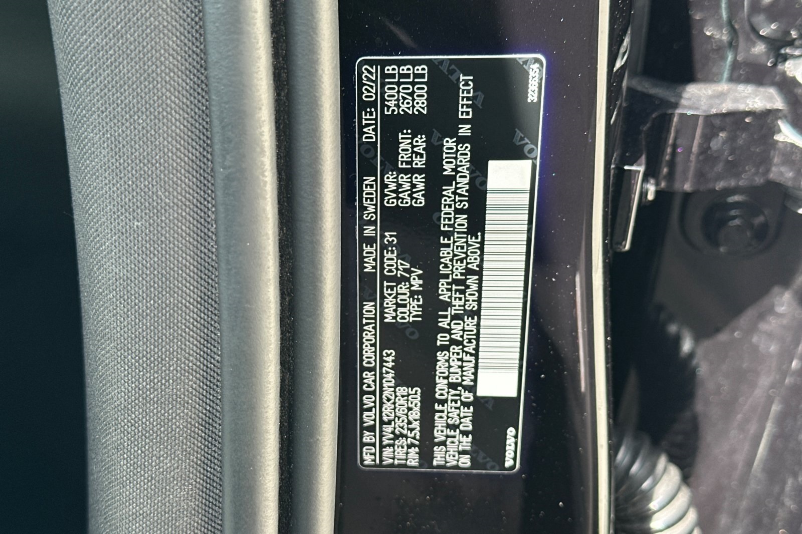 - VIN : YV4L12RK2N1047443