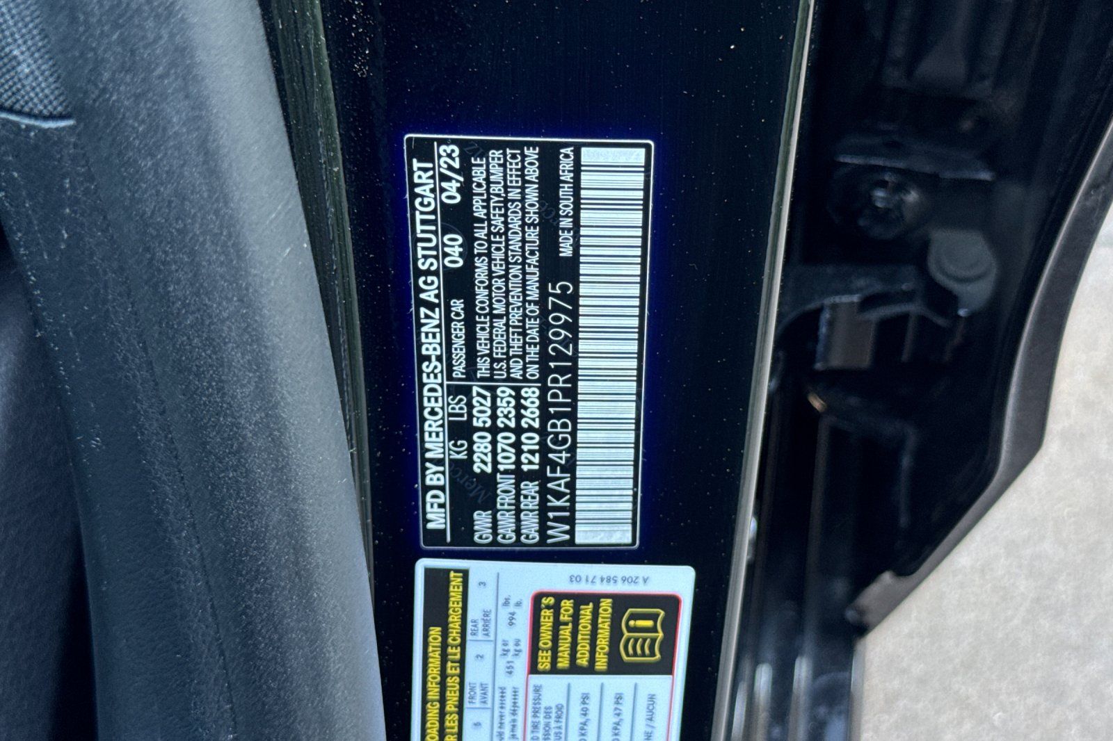 - VIN : W1KAF4GB1PR129975