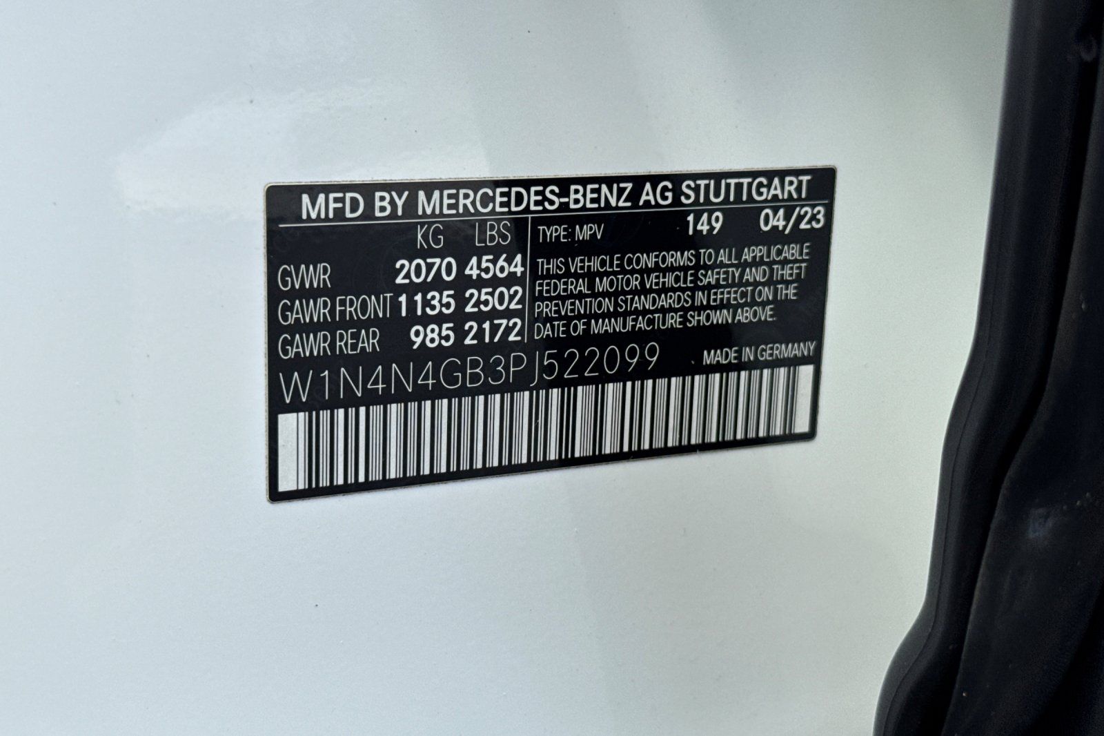 - VIN : W1N4N4GB3PJ522099