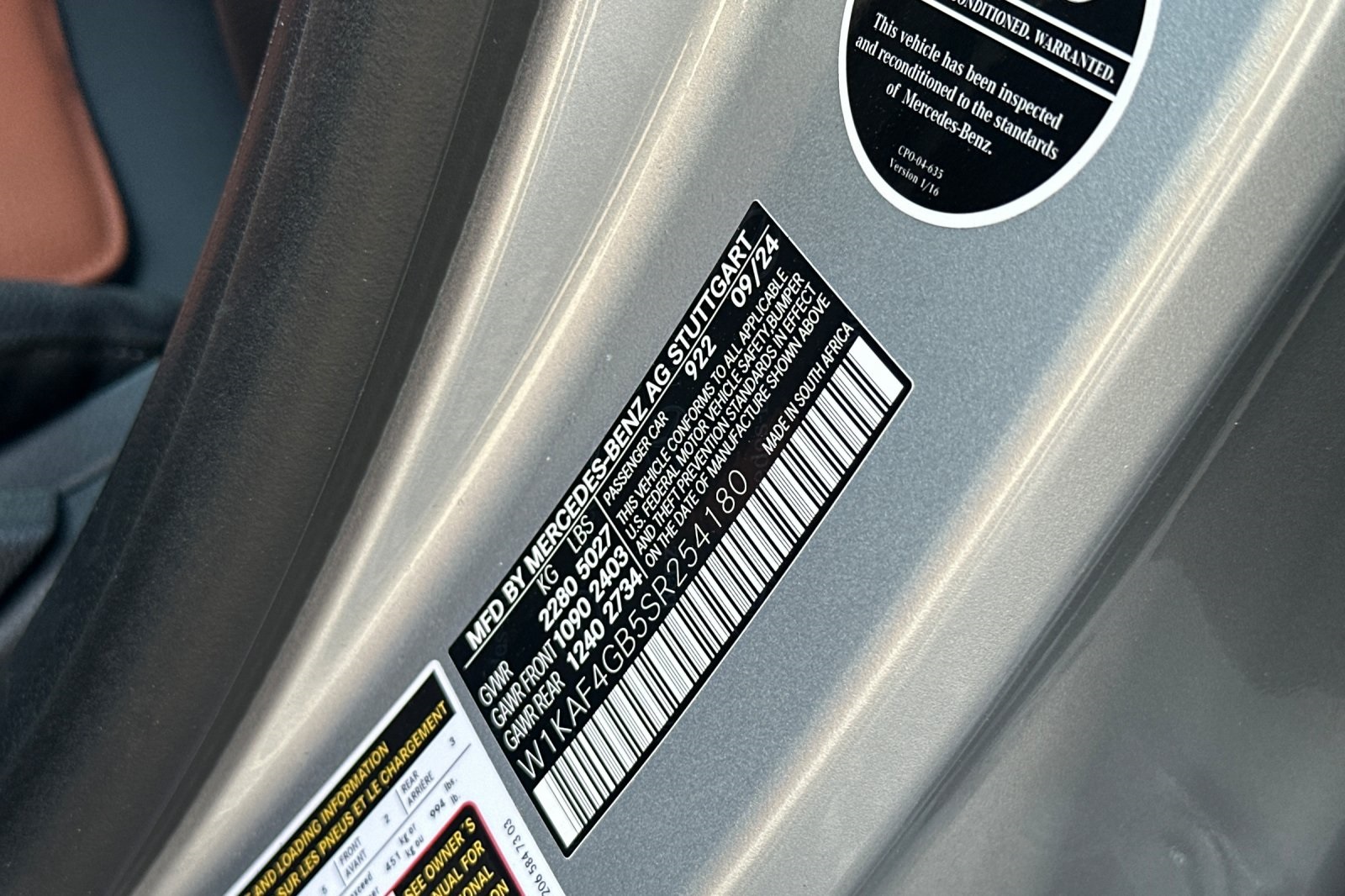 - VIN : W1KAF4GB5SR254180