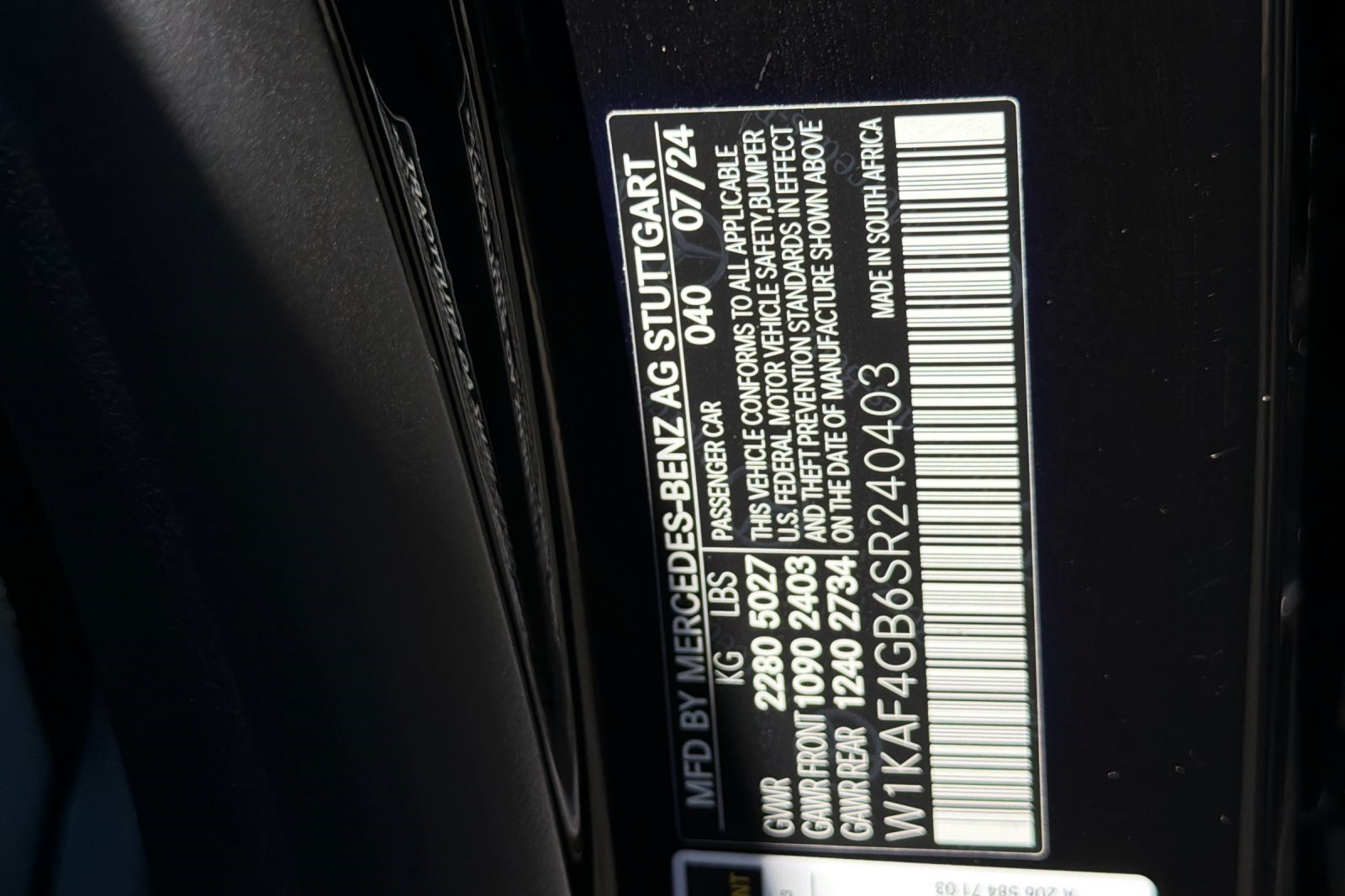 - VIN : W1KAF4GB6SR240403