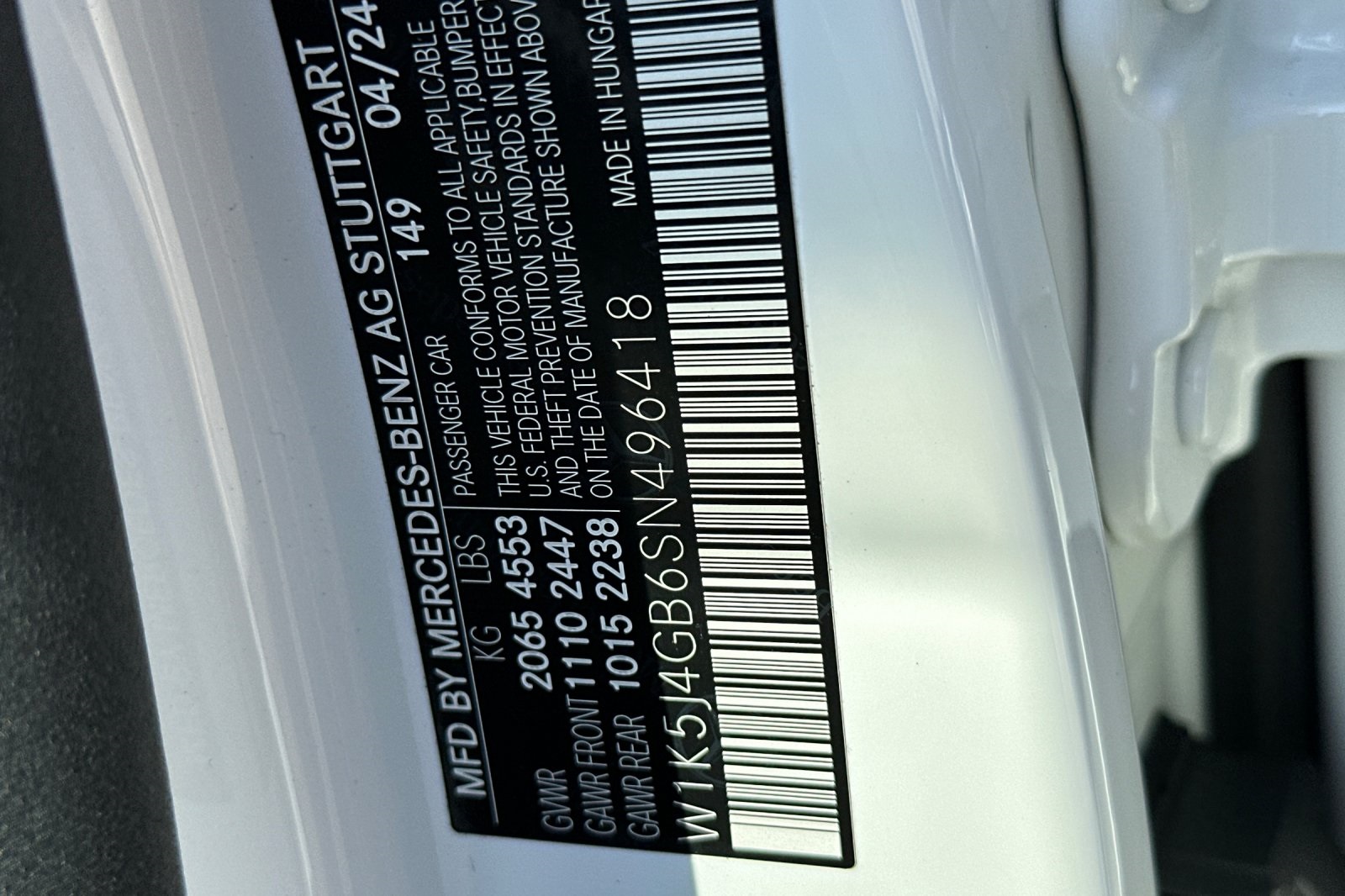 - VIN : W1K5J4GB6SN496418
