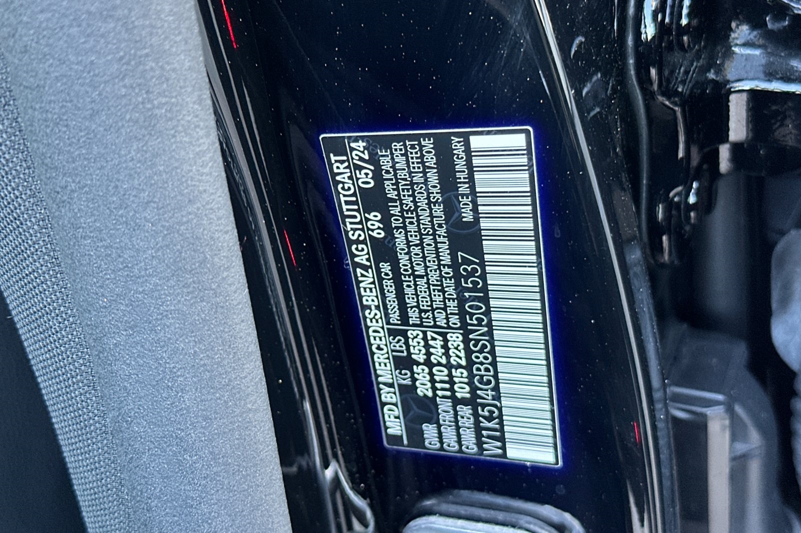 - VIN : W1K5J4GB8SN501537