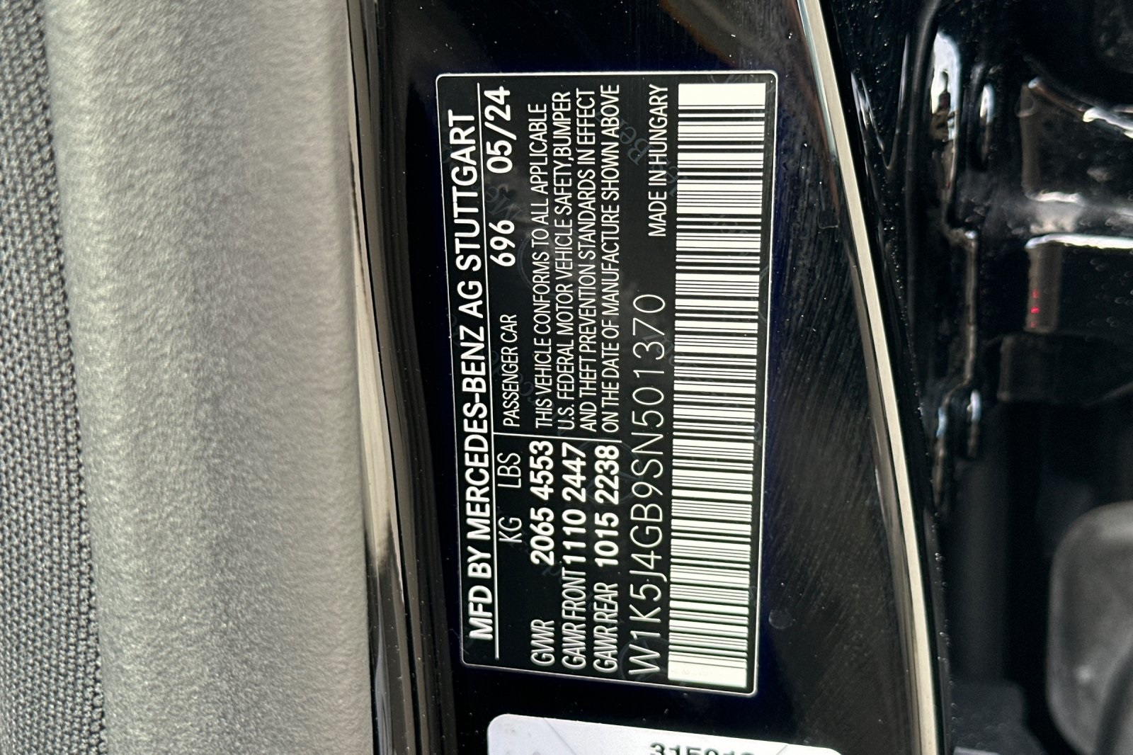 - VIN : W1K5J4GB9SN501370