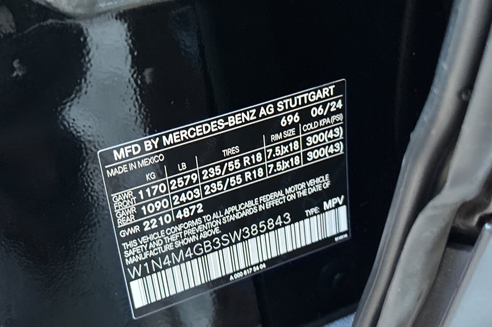 - VIN : W1N4M4GB3SW385843