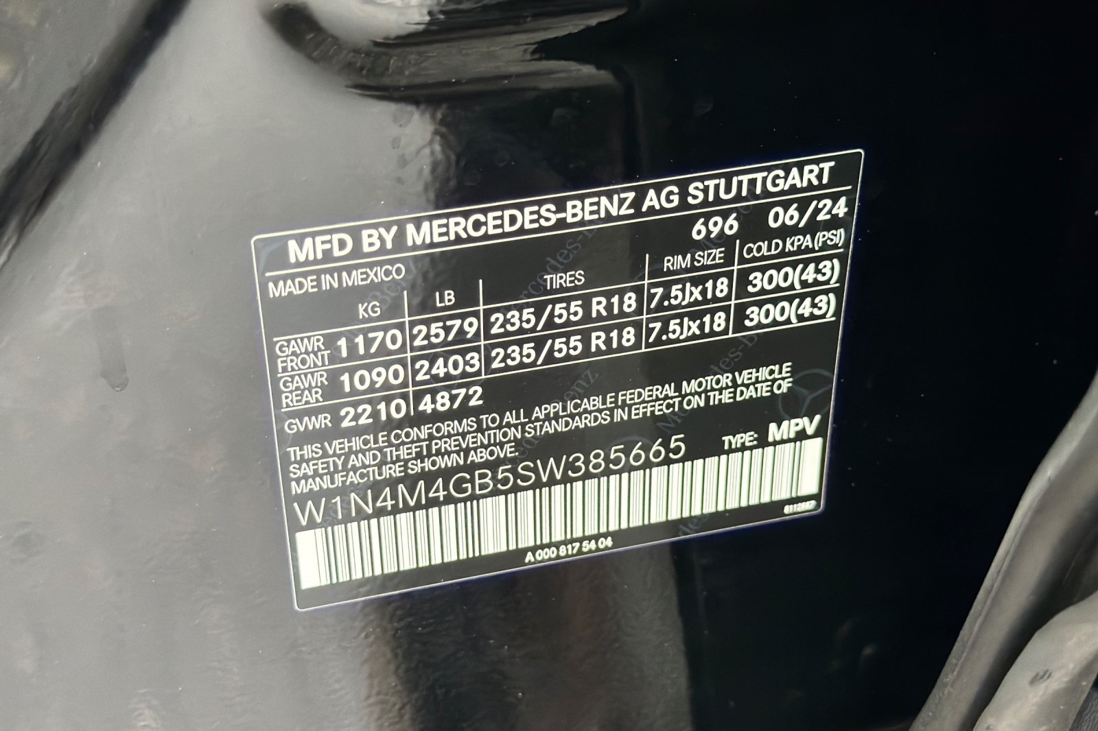 - VIN : W1N4M4GB5SW385665