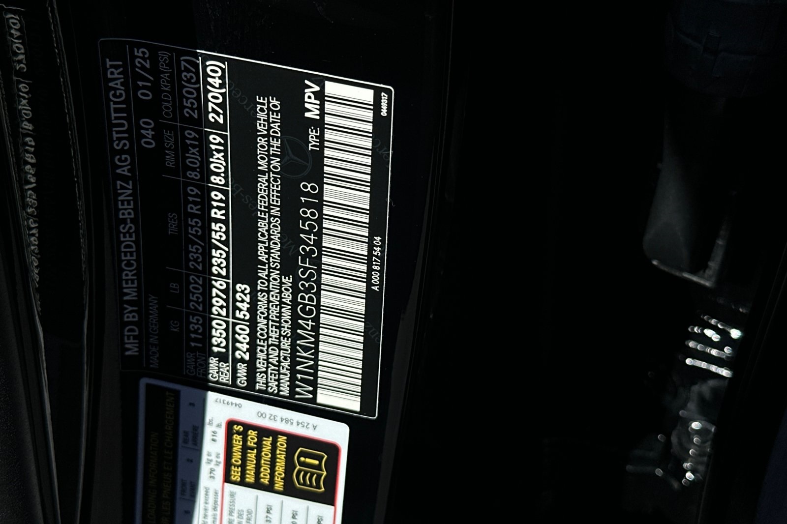 - VIN : W1NKM4GB3SF345818