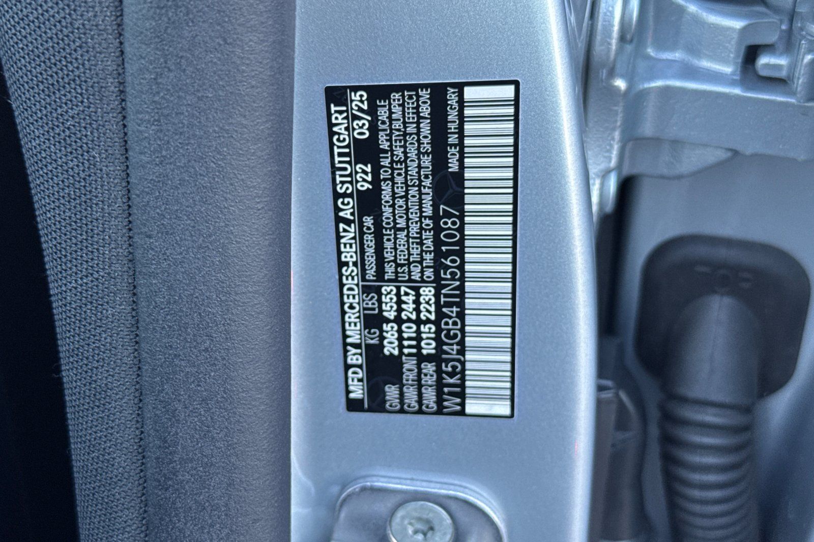 - VIN : W1K5J4GB4TN561087
