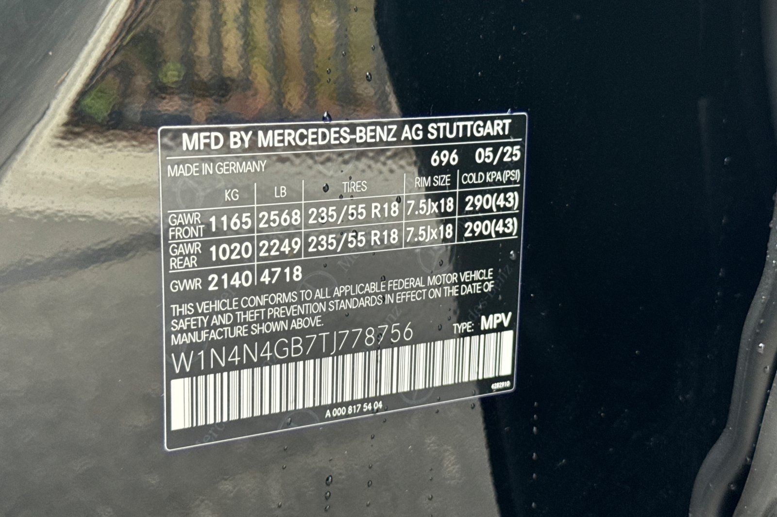 - VIN : W1N4N4GB7TJ778756